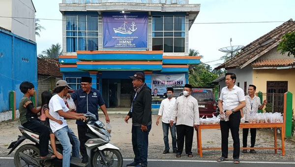 LAMPUNG77.com – Dewan Pimpinan Daerah (DPD) Himpunan Masyarakat Nelayan Indonesia (HMNI) Lampung Timur berkolaborasi dengan Pengurus Daerah Ikatan Wartawan Online (IWO) berbagi takjil di Jalan Lintas Desa Karya Tani, Kecamatan Labuhan Maringgai, Lampung Timur, Sabtu (14/3/2026).